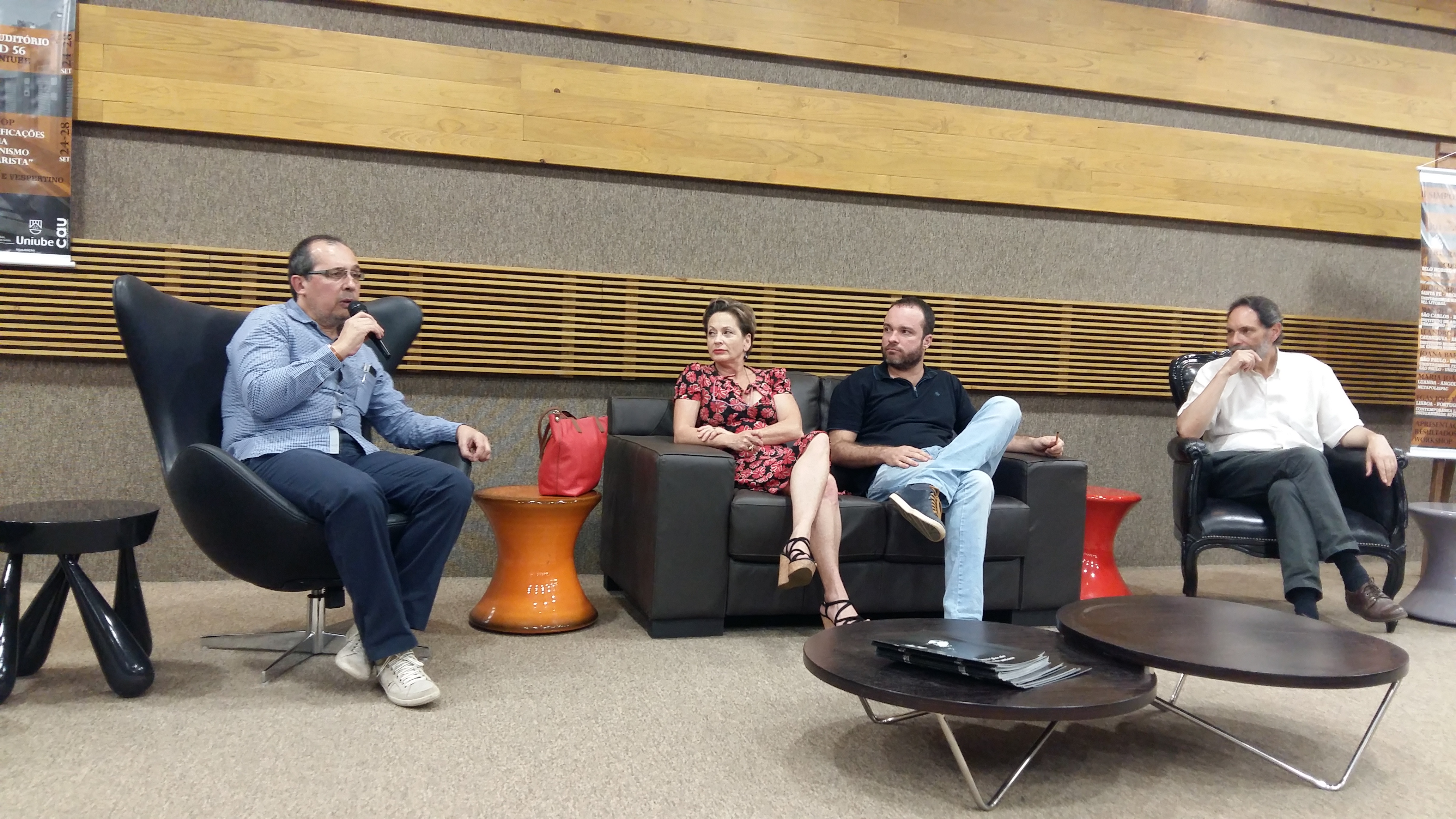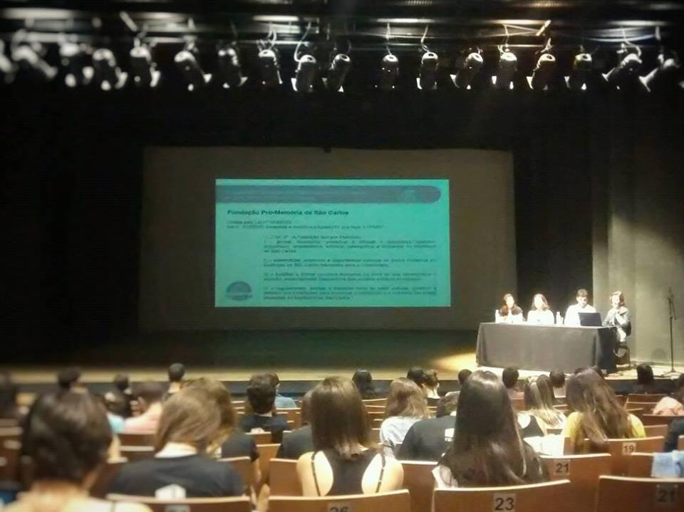 No dia 09/08, a pesquisadora Maísa Fonseca participou de Mesa sobre Patrimônio juntamente com a Arq. Mariana Lucchino (Pró-Memória) e o Arq. Rodrigo Peronti discutindo a atuação do Instituto Pró-Memória-São Carlos e o papel do arquiteto na área do Patrimônio.