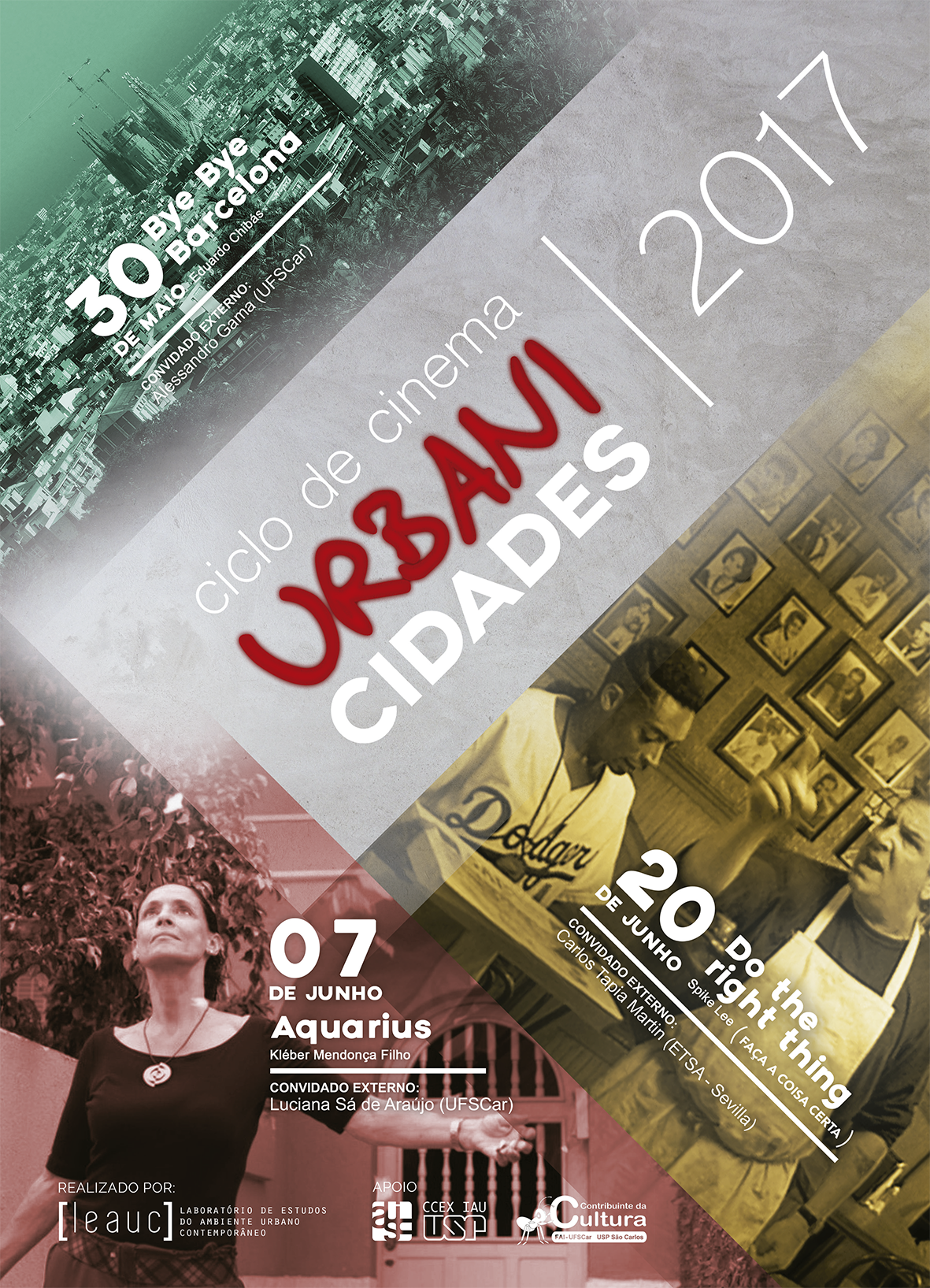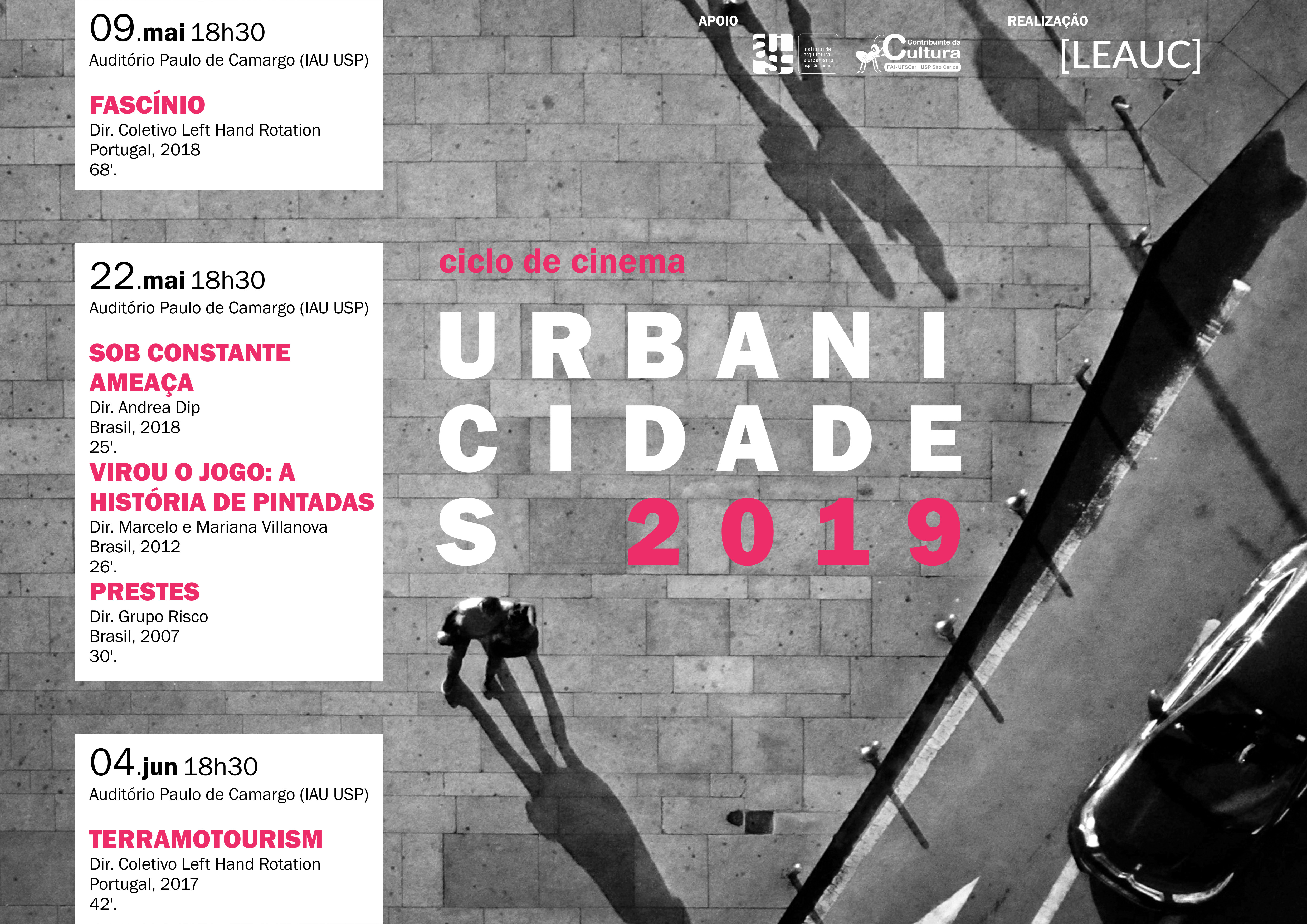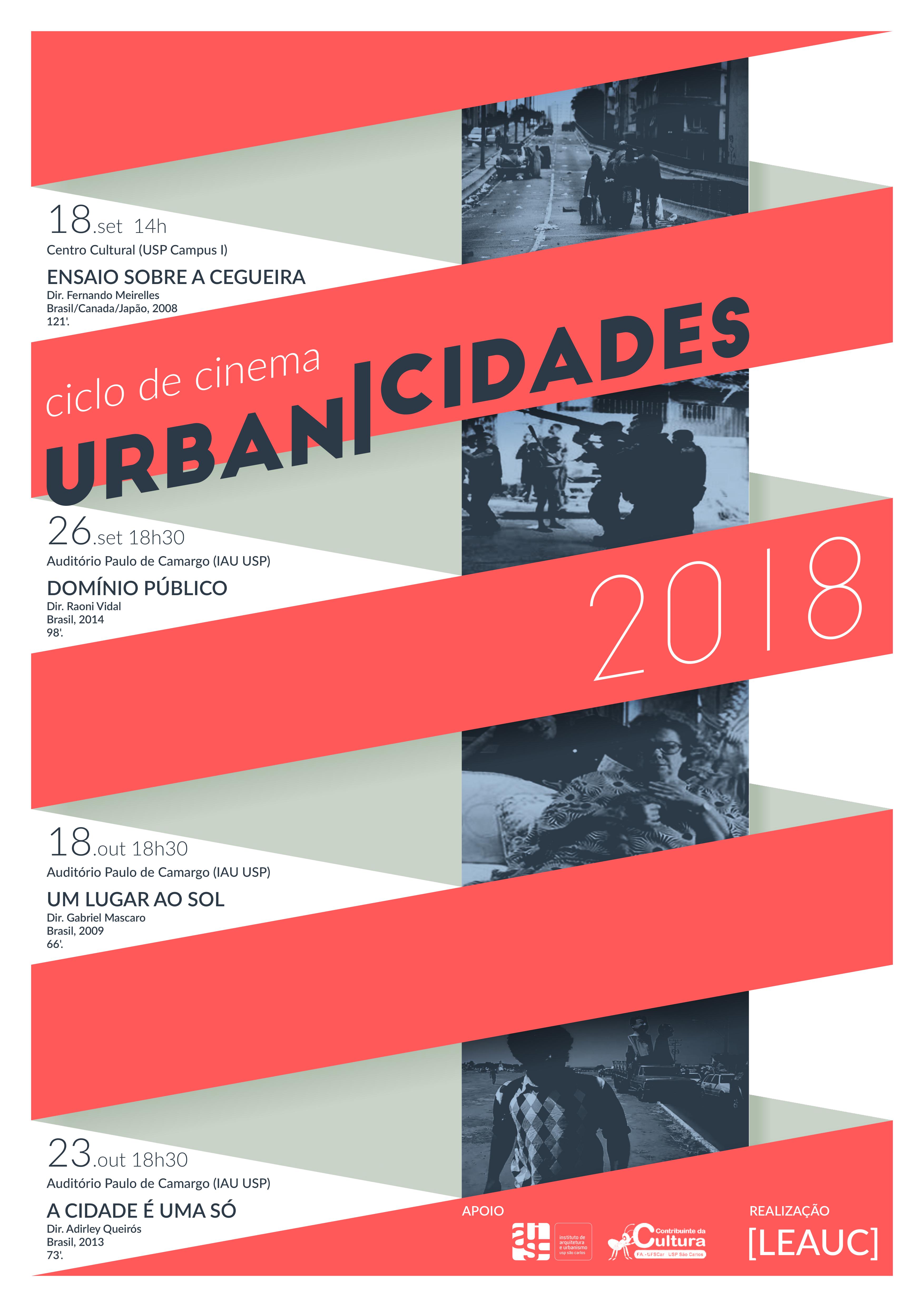 Durante os meses de setembro e outubro, o LEAUC - Laboratório de Estudos do Ambiente Urbano Contemporâneo, realizou o 4º Ciclo de Cinema e Debate | Urbanicidades 2018. A mostra foi composta por quatro sessões, que debateram relações político-territoriais e tensões urbanas.