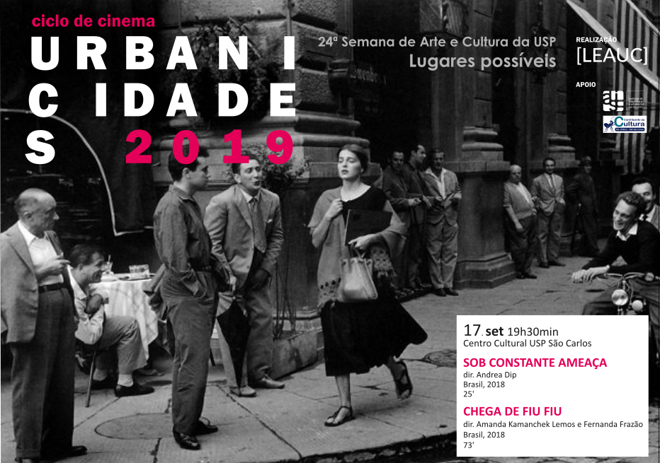 Para a atividade do Urbanicidades proposta como integrante da 24ª Semana de Arte e Cultura, o grupo de pesquisa sugere a exibição de dois filmes que dialogam diretamente com o tema - “Lugares Possíveis”. O primeiro documentário, “Sob constante ameaça”, foi produzido pela jornalista Andrea Dip, da Agência Pública, abordando a restrição do direito à cidade para as mulheres por medo e violência de gênero. Para compor esta discussão, o segundo filme, “Chega de Fiu-FIu” é fruto de uma campanha criada em 2013 pelo coletivo Think Olga. A partir da grande participação de uma pesquisa online lançada pelo coletivo, foi possível a elaboração deste documentário independente, que aborda o assédio no espaço público.