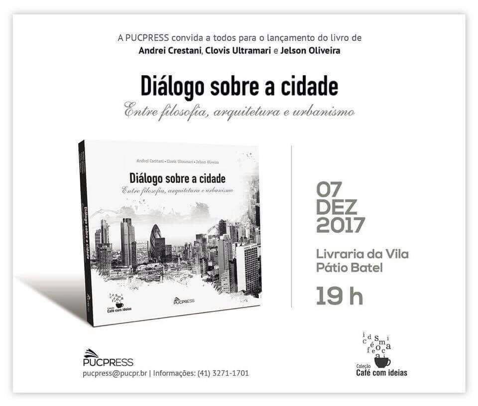 O pesquisador Andrei Mikhail Zaiatz Crestani lança livro DIÁLOGO SOBRE A CIDADE : ENTRE FILOSOFIA, ARQUITETURA E URBANISMO em parceria com os pesquisadores o Clovis Ultramari, arquiteto e urbanista, e o filósofo Jelson Oliveira.